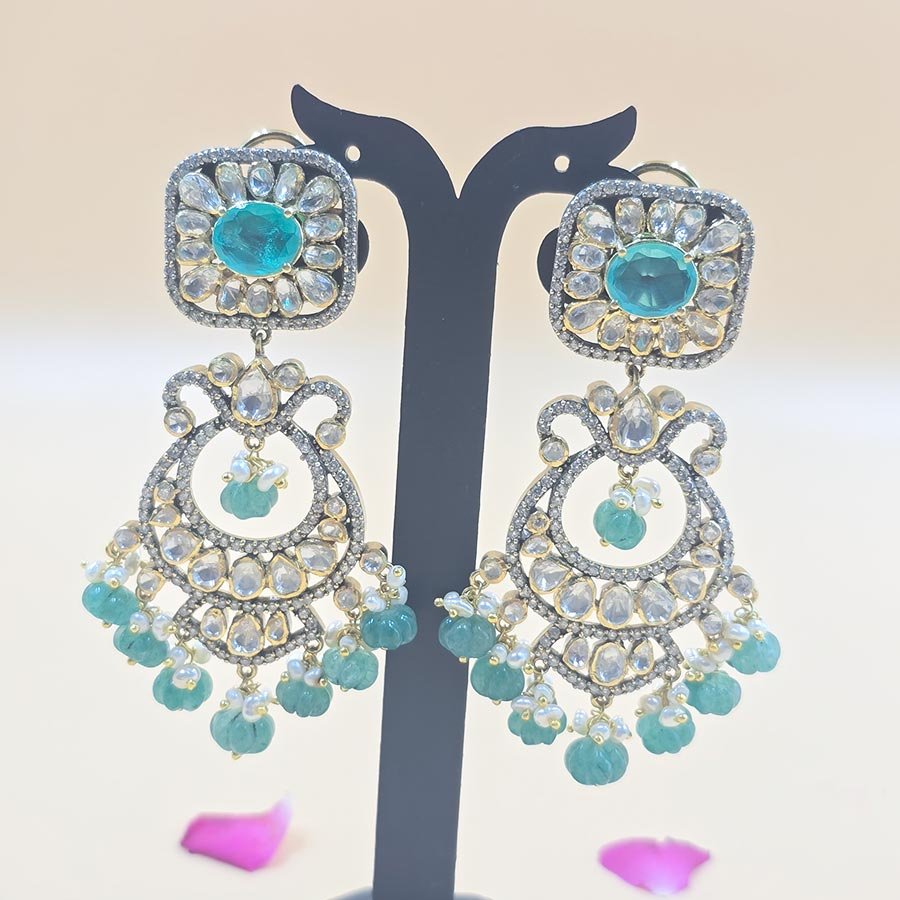 Aqua Moissanite Chandbali Earrings